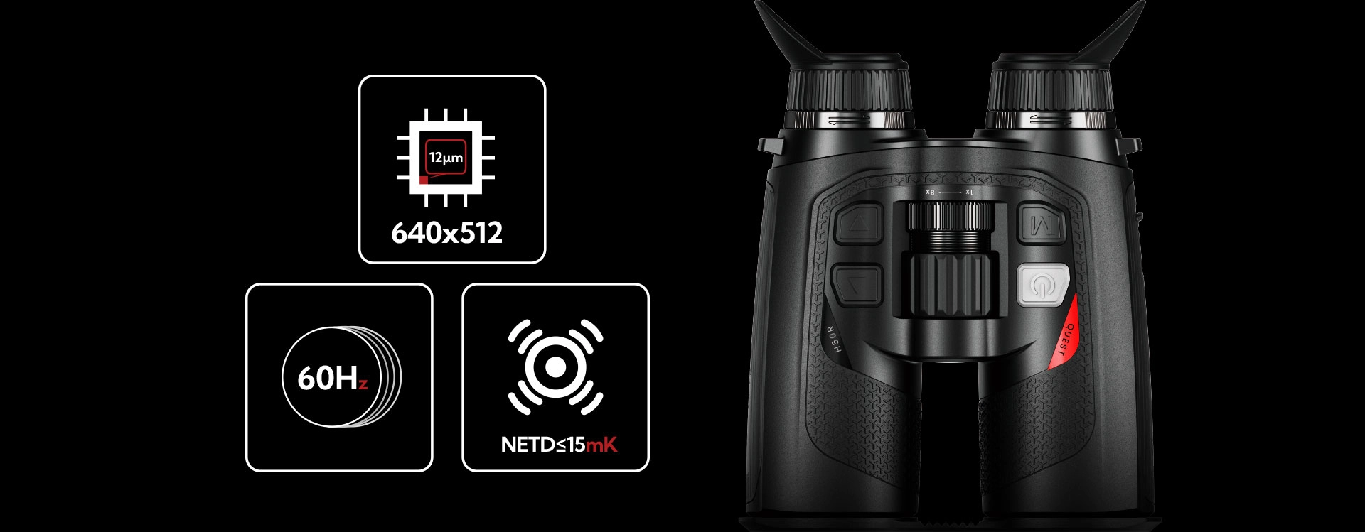 H50R • H35R • L35RLéger et portable, le QUEST offre une portée de détection allant jusqu'à 2 600 m et un LRF dissimulé intégré d'une portée de 1 000 m pour une précision et une visibilité optimales. Sa conception binoculaire traditionnelle, dotée d'un revêtement entièrement en caoutchouc et d'un indice de protection IP67, garantit durabilité et confort dans des conditions difficiles. Équipé d'un capteur haute performance 640 x 512 (NETD ≤ 15 mK, 60 Hz), le QUEST garantit une clarté d'image exceptionnelle, une sensibilité thermique supérieure et des performances optimales dans les environnements difficiles.