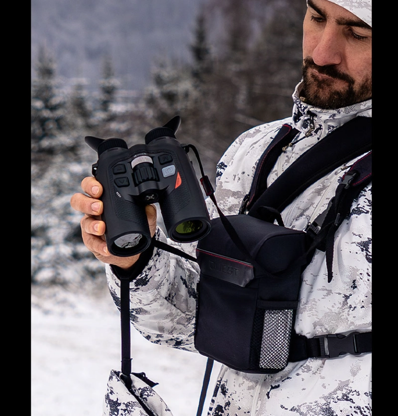 H50R • H35R • L35RLéger et portable, le QUEST offre une portée de détection allant jusqu'à 2 600 m et un LRF dissimulé intégré d'une portée de 1 000 m pour une précision et une visibilité optimales. Sa conception binoculaire traditionnelle, dotée d'un revêtement entièrement en caoutchouc et d'un indice de protection IP67, garantit durabilité et confort dans des conditions difficiles. Équipé d'un capteur haute performance 640 x 512 (NETD ≤ 15 mK, 60 Hz), le QUEST garantit une clarté d'image exceptionnelle, une sensibilité thermique supérieure et des performances optimales dans les environnements difficiles.