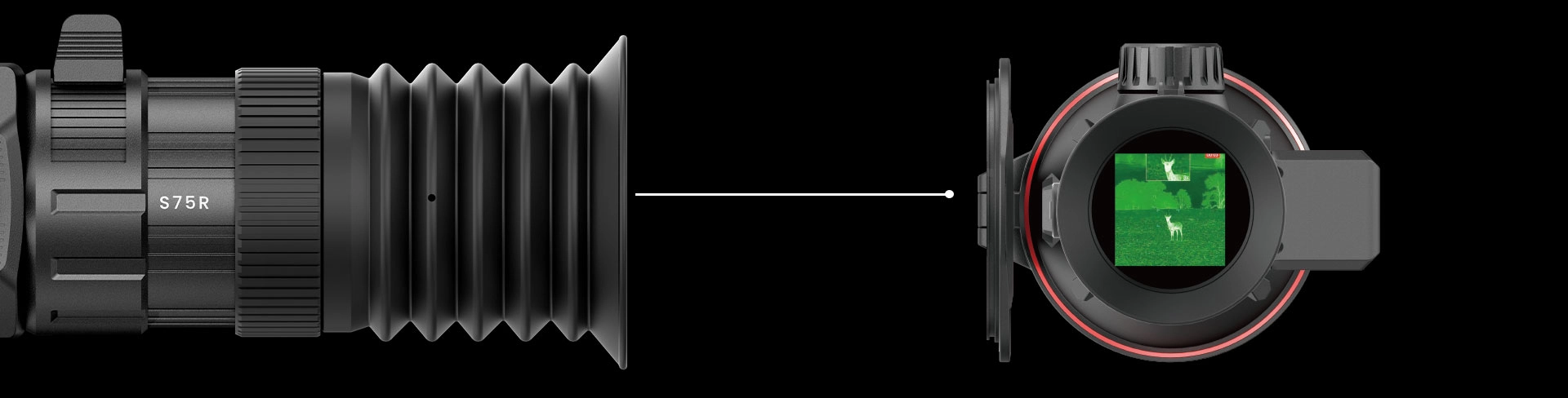 Un écran OLED 1,03" 2560 × 2560 (S75R), un oculaire sans distorsion, un dégagement oculaire de 70 mm et une pupille de sortie de 23 mm offrent une visualisation nette et confortable pour des sessions prolongées.